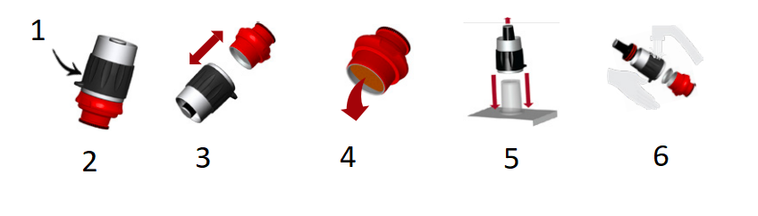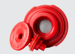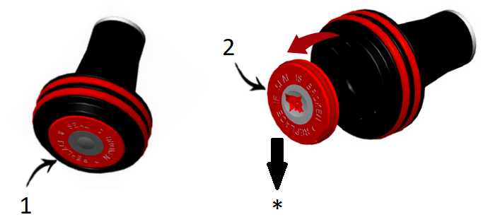 *Remova a válvula quebrada puxando-a pelo pequeno recesso na borda da válvula. Recoloque-a empurrando a nova válvula no recesso na parte inferior do pistão, com a película voltada para fora.