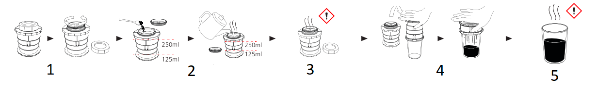 - Feche o Micro Filtro e deixe em infusão (1-3 minutos, conforme o gosto).