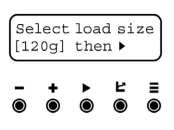![]() | Você será solicitado a selecionar o seu Ajuste o tamanho da carga com os botões + e -. |