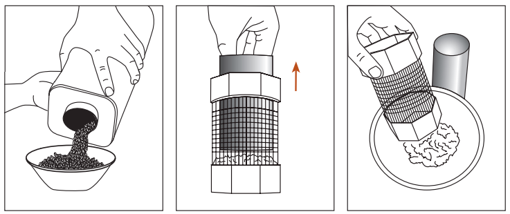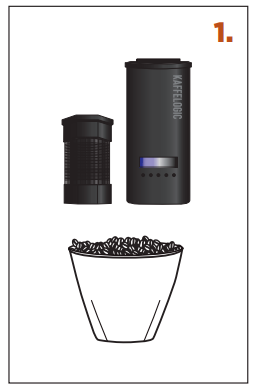 2. CARREGAR – retire o coletor de palha e despeje o material verde. Os grãos são colocados diretamente na câmara de torrefação. |