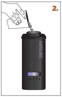 1. PORÇÃO – utilize uma porção rasa de vagem. [Use a colher fornecida.] Caso contrário, meça 120–160 ml ou 90–120 g. Não sobrecarregue. Se estiver usando grãos de café descafeinados ou torrados, eles são menos densos e recomenda-se que você carregue por peso. |
