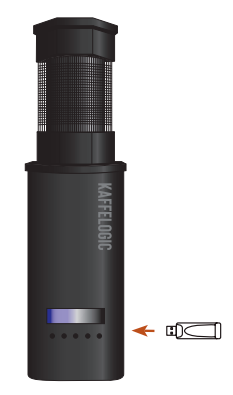 Um registro de torra será salvo se um pen drive estiver conectado ao torrador durante o processo. Os registros de torra são salvos automaticamente na pasta /kaffelogic/roast-logs/. Insira o pen drive no seu computador para visualizar o registro.