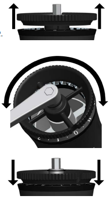 Coroa de ajuste de elevação, rotação e travamento