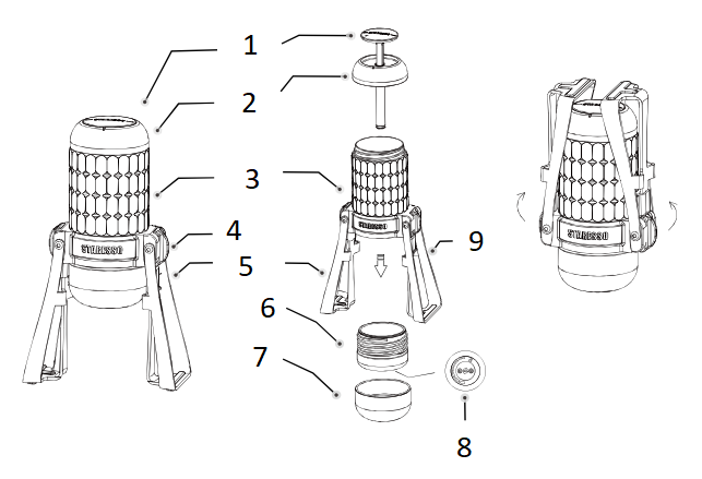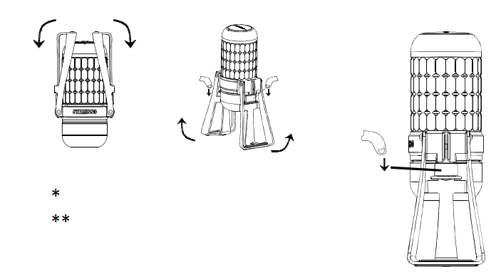 ** Para armazenar: Puxe o interruptor móvel para baixo para liberar os dois suportes e então simplesmente dobre-os para cima.