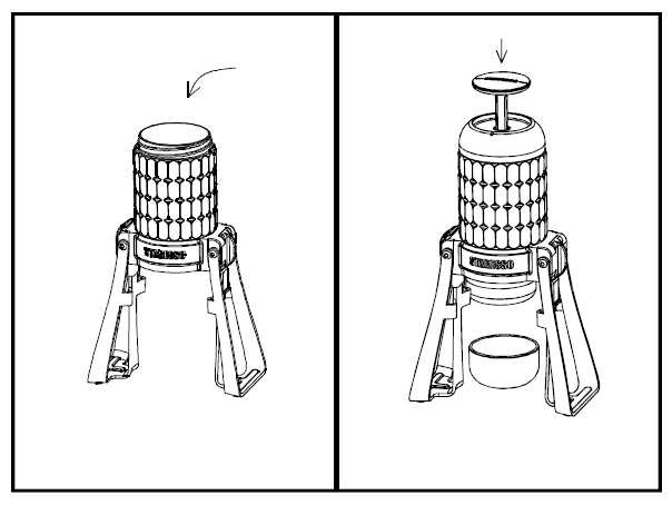 - Gire e solte a tampa da bomba e comece a bombear. Para obter o melhor resultado de extração, tente bombear a cada dois segundos. Você sentirá a pressão começar a diminuir quando toda a água acabar. Nesse momento, pare de bombear. Seu café está pronto... Bom apetite!