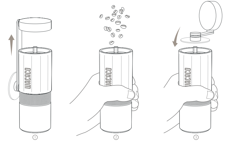 2. Carregue a câmara do moedor com no máximo 20 g de grãos de café.