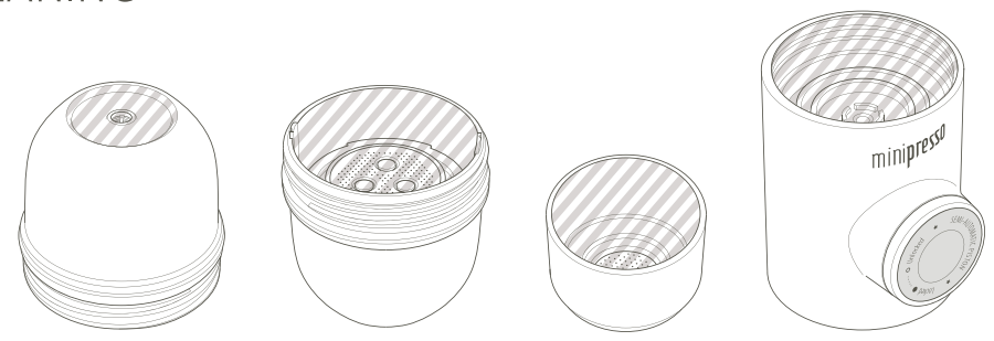 - Utilize apenas água limpa no Minipresso. Não utilize nenhum outro fluido.