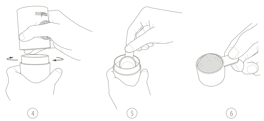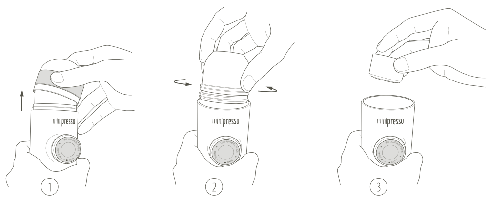 - Pré-aqueça todas as peças MiniPresso, bem como a xícara, executando um ciclo somente com água quente.