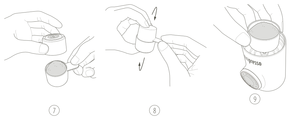 6. Encha a colher com café moído.
