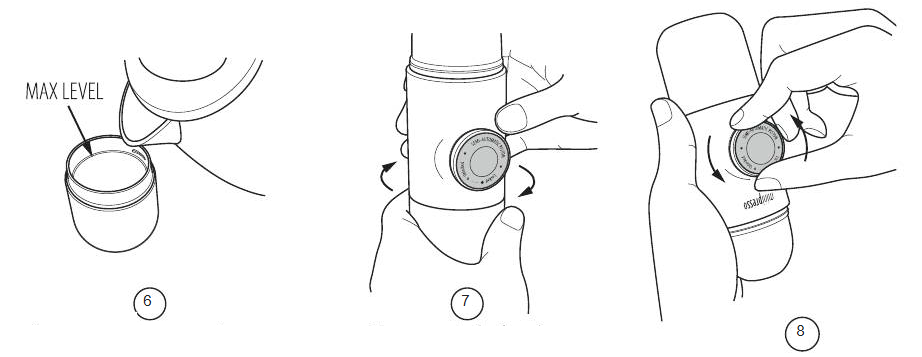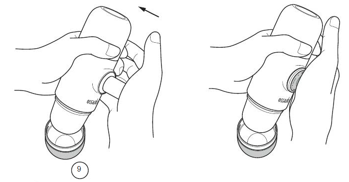 4. Aperte bem a cabeça de saída para perfurar a cápsula.